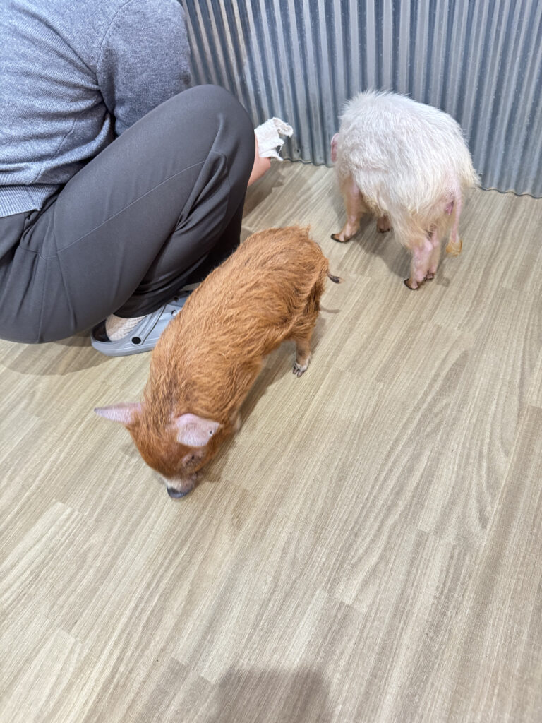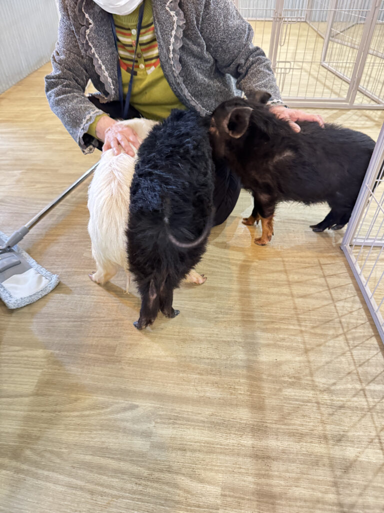 今日は豚ちゃんたちもお部屋の中を自由にウロウロと歩き回り、のびのびと過ごしていました。